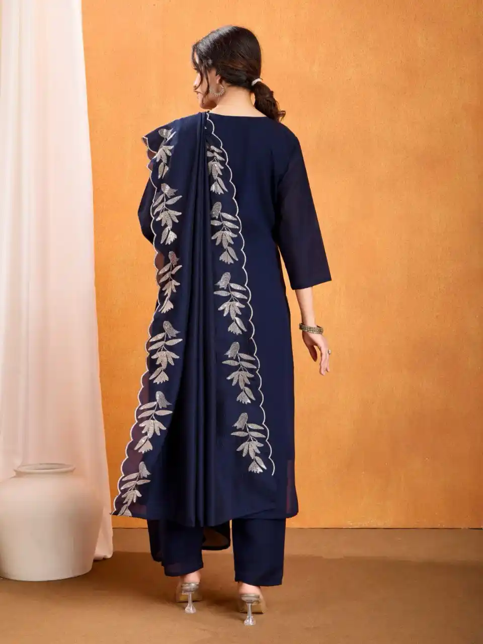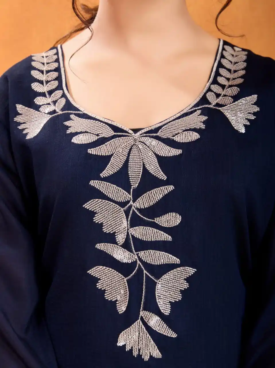 Cotton Salwar Suit Set, Round Neck, 3/4 Sleeve with Embroidery, Ankle Length